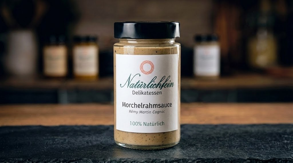Bratensauce (Kalbsknochen, Kalbsfüsse, Zwiebel, Knollensellerie, Karotten, Tomatenpüree, Weisswein*, Rotwein*, Maisstärke, Lorbeerblätter, Nelken, Pfeffer, Zucker, Meersalz.), Vollrahm(Milch) 28%, Rapsöl, Morchel 11%, Rémy Martin Cognac 2% *enthält Sulfite